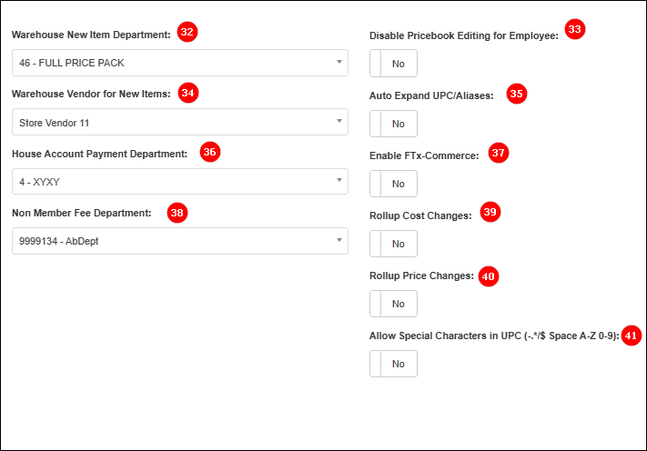 41. Allow Special Characters in UPC: If this option is set to Yes, the system will allow the use of special characters in UPC.