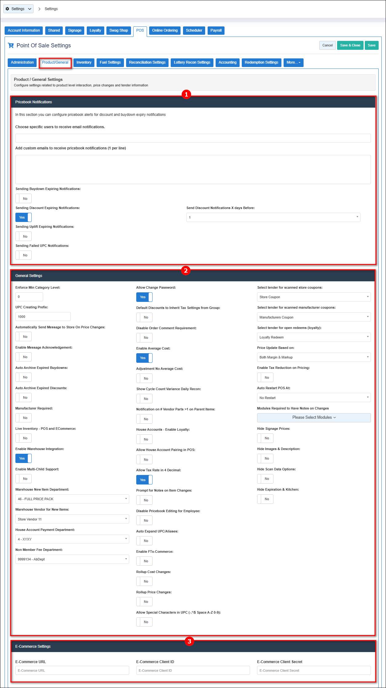"Product/General Settings" lets you configure all the product-level interaction, price changes, and tender information. This article focuses on explaining what individual settings in the module are configured for.