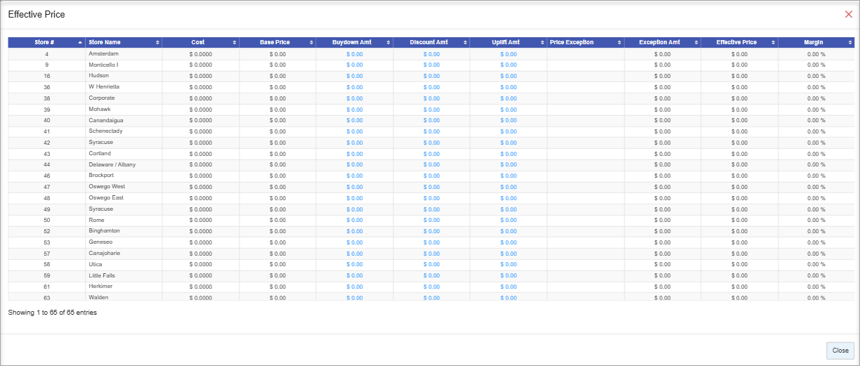 - Finally, click the highlighted “Save” button adjacent to the “Close” button. Once all the Pik A Pak price-type records are saved, they will appear in the form of a list on the POS screen during a transaction.