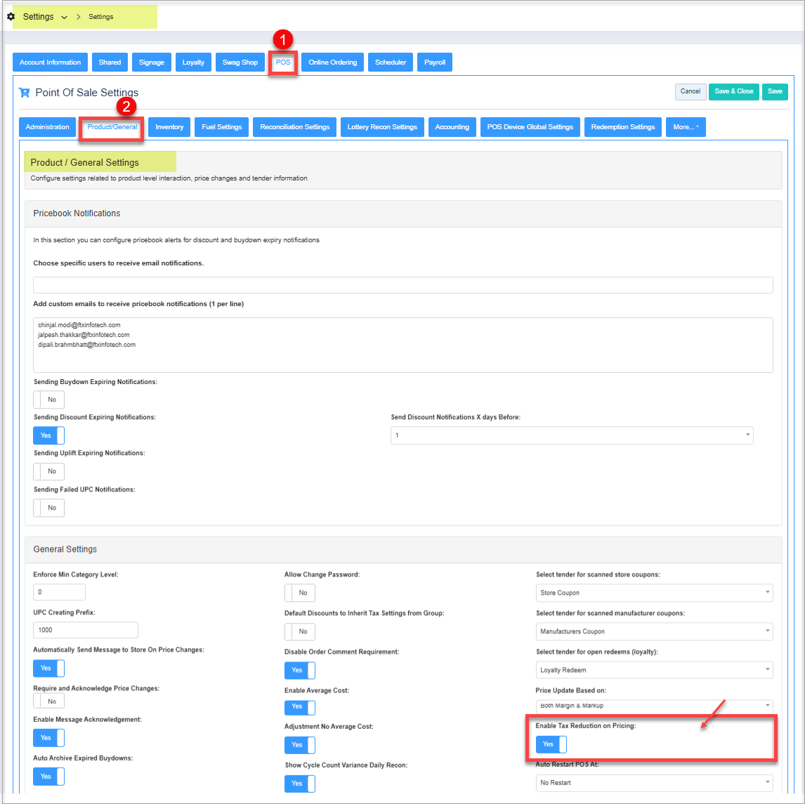 - Allow Waste: When this toggle is enabled, the system will allow the user to remove records of spoiled/expired food from the inventory directly from a POS screen. If it is set to NO, the system will not allow them to do so.