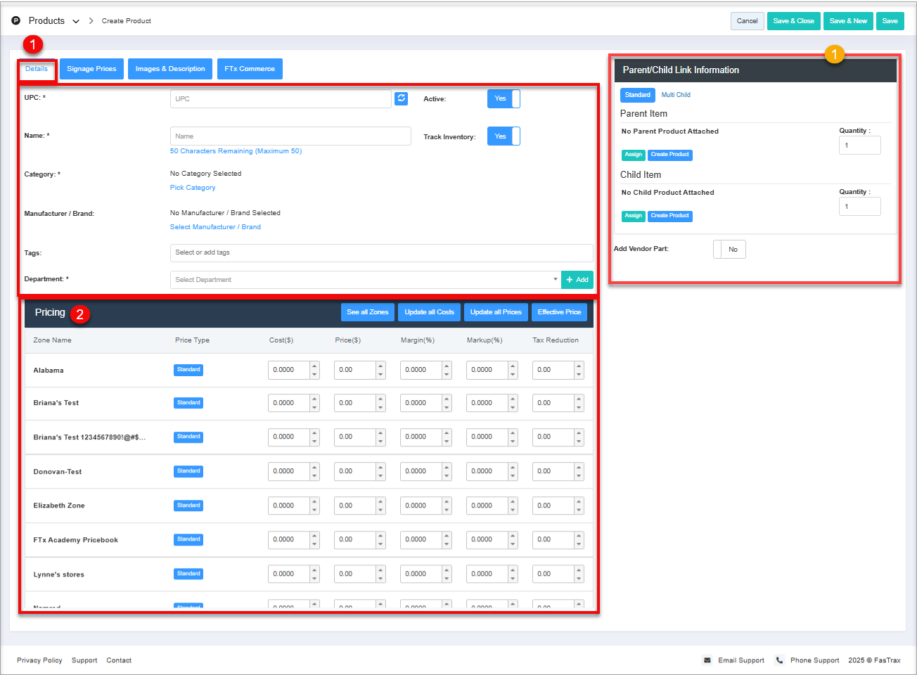 Refer to heading 1.1 Details above under Add Product and heading 2.1 Pricing below under Edit Product.