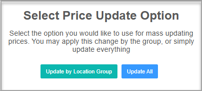 - Click the “Update All Prices” button provided in the Pricing section. A confirmation dialog box labeled Select Price Update Option will appear on your screen.
