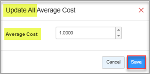 3. Update All – This button allows you to update the average cost for all locations at once, adjust the Average Cost as needed, and click "Save."