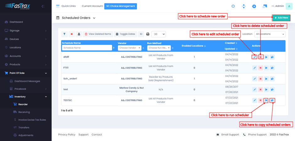 2.3: Copy Scheduled Order: This button lets you copy a scheduled order. Sometimes, copying an order and making the required changes is time-saving.