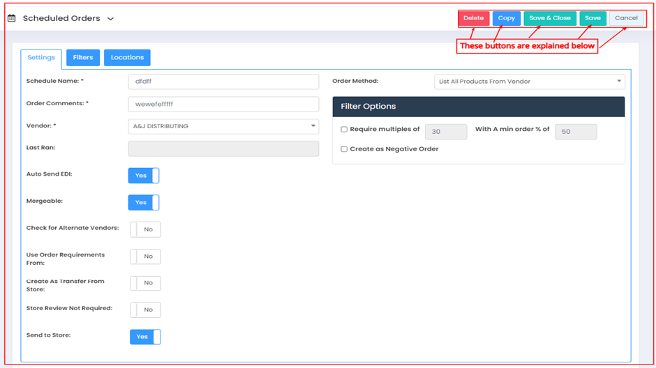 Copy Locations: Enable this button to copy the locations from the existing scheduled order.