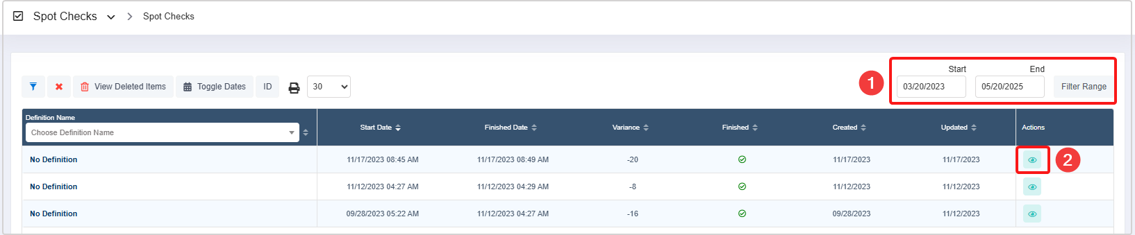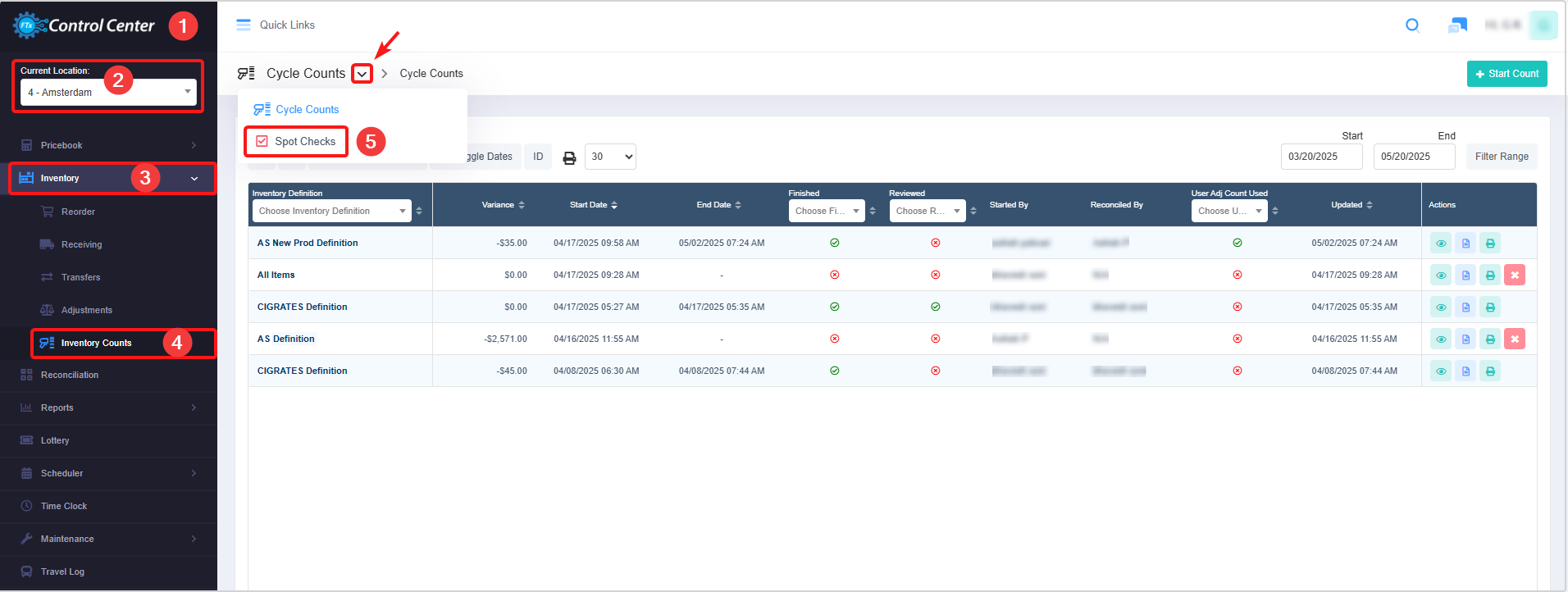 When spot checks are completed using the FTx Cloud Handheld app, corporate employees or store employees with the required rights can view and review them in Control Center, following the process outlined below.