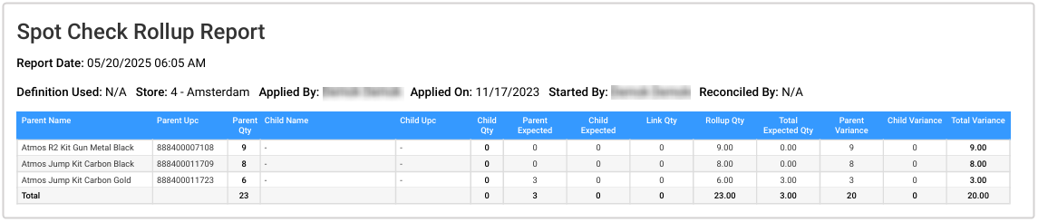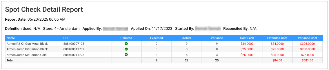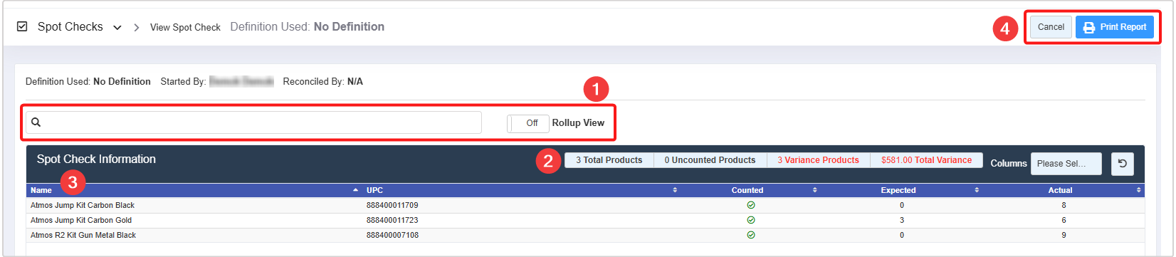 - Spot Checks Information: This section shows the total products, uncounted products, variance products, and total variance.