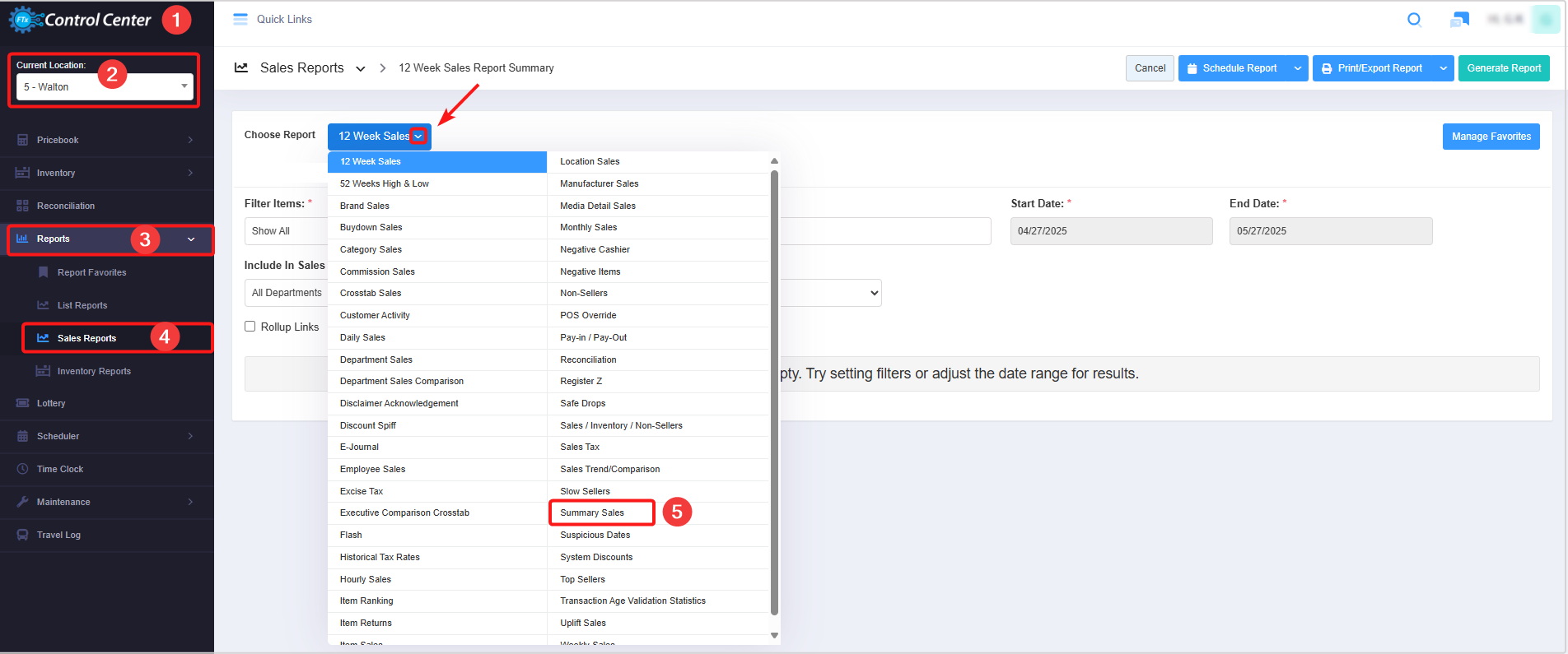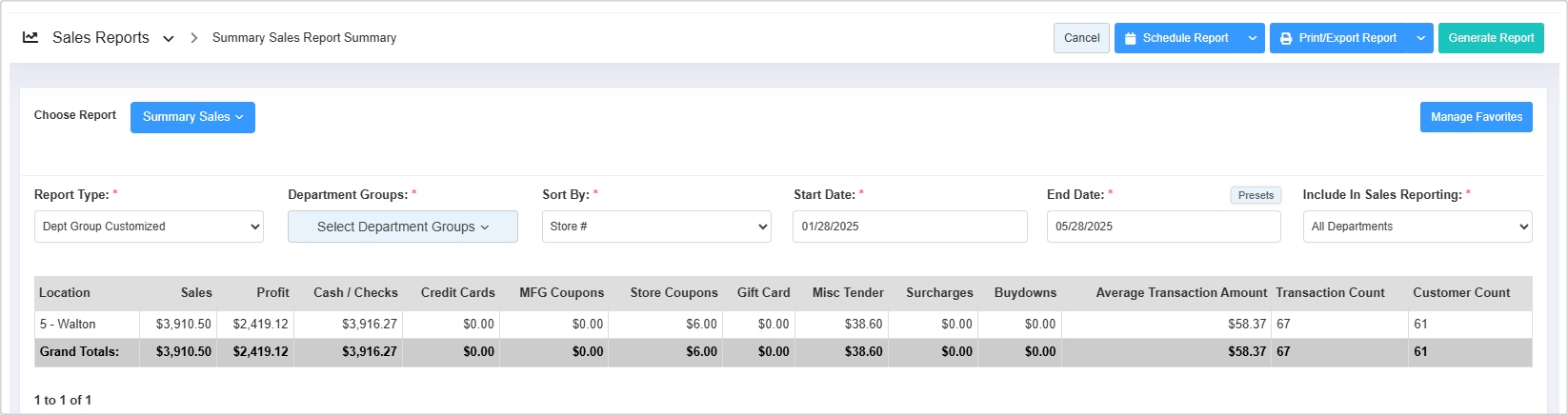 - Select the desired date range and click "Generate Report" to view the Summary Sales Report for that specific date range.