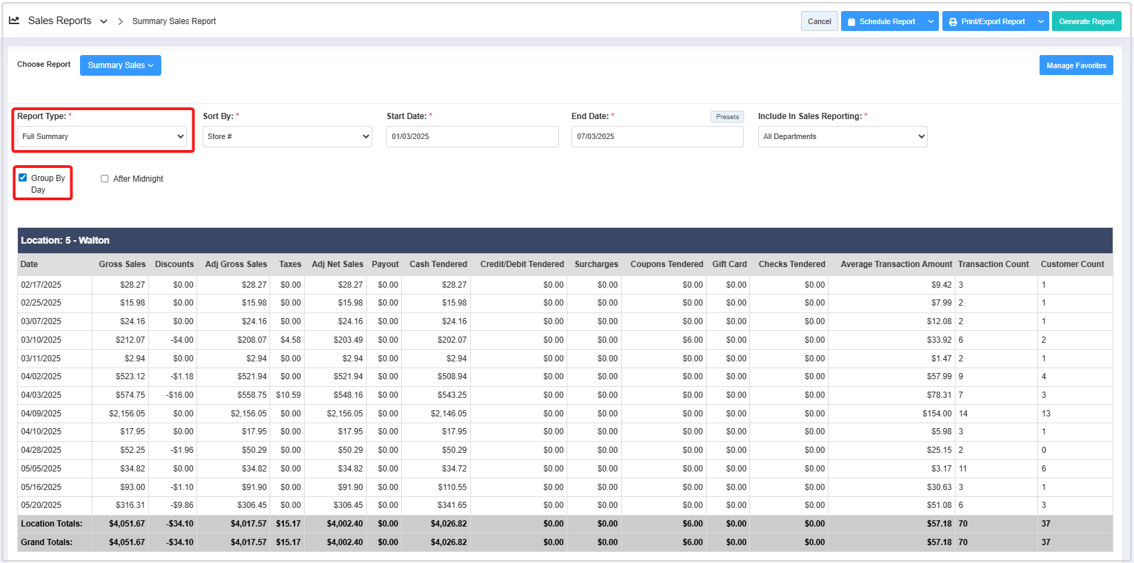 - Full Summary: This report type displays the full summary of your sales. Please follow the steps below to generate the report using the "Full Summary" report type.
