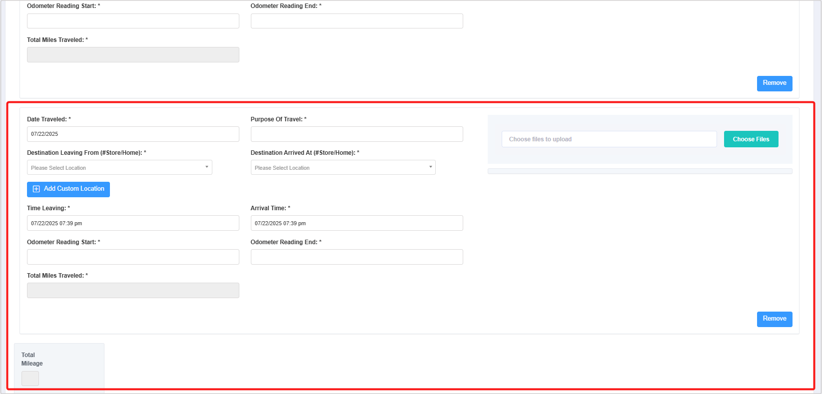 - Total Miles Traveled: The system will calculate the miles travelled based on the odometer readings.