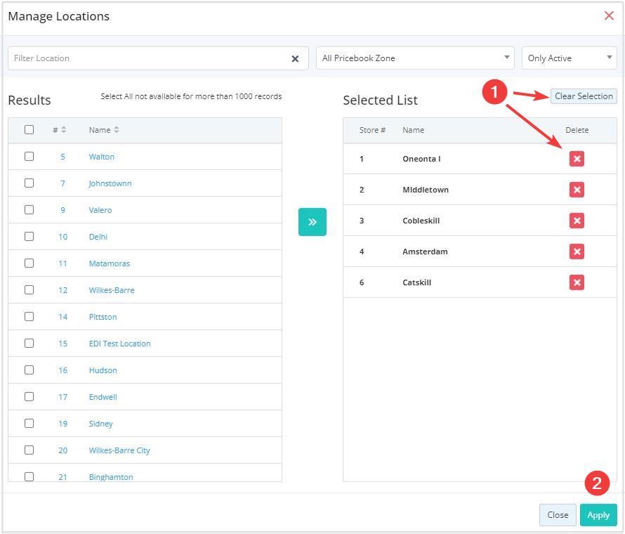 Figure 3.51: If you want to remove the whole selection, click the "Clear Selection" button. You can remove any record from the list by clicking the Remove (x) icon.2: Click "Apply" to apply the selection.