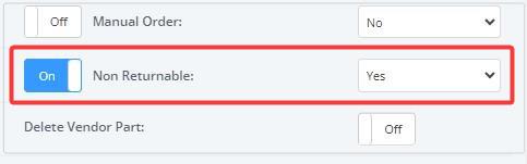 Manual Order: Enable this button to prevent automated order placement for this vendor in this pricebook zone.Min Order Qty: Enter the quantity of any minimum order quantity required to place the order with this vendor in this price book zone.Non Returnable: Enable "YES" if the product is non-returnable.The vendor part cost may differ from the product cost in the "Products" module. When adding the vendor part, the system will fetch the cost for the first time. However, if you make any changes afterward, there will be no automatic sync in the cost of either module.