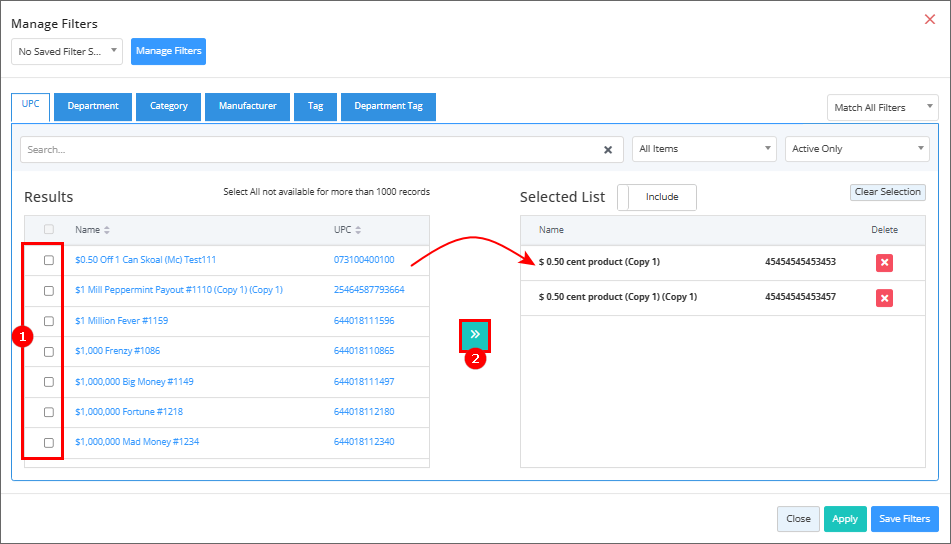 2. Specific Discounts: This option will display items removed from the "Manage Filter" page.